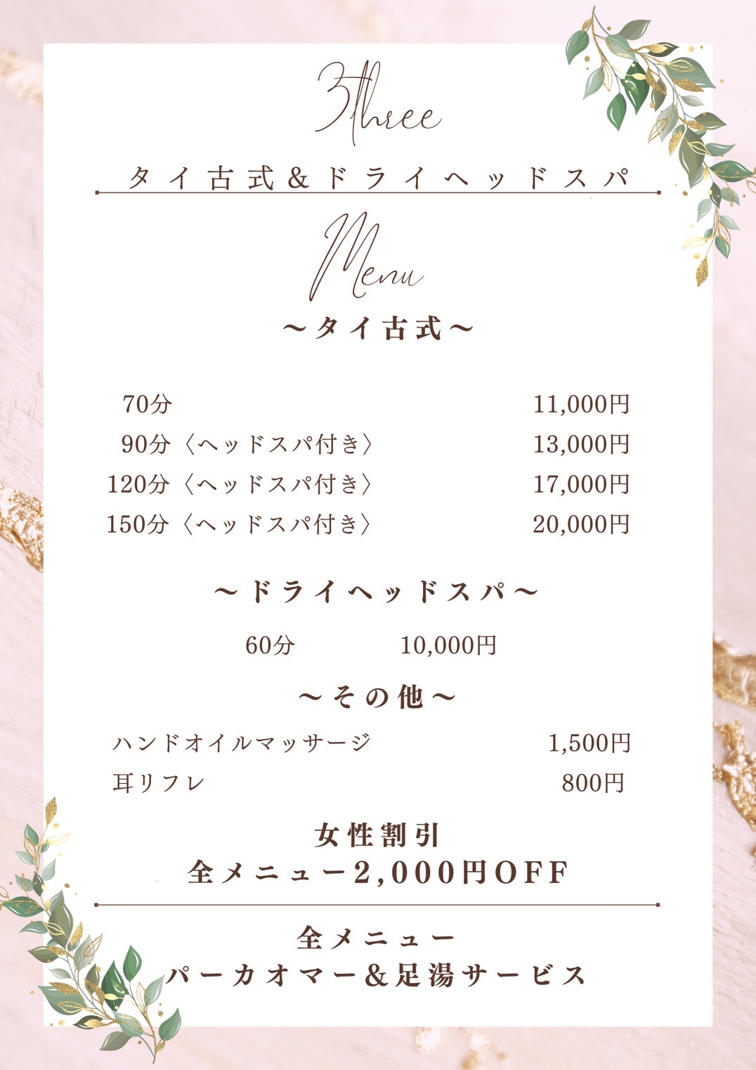 料金のご案内 2025.06.28 いつも当サロンをご利用いただき、ありがとうございます。 この度はサービスの向上や新しいメニューの提供に伴い、料金を一部上げさせていただくことになりました。 ご理解とご協力をよろしくお願い申し上げます。 七月より新規受付、web予約受付開始 前の記事 倦怠感や質の良くない睡眠 次の記事